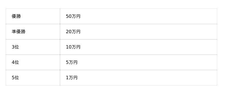 学生のみ参加できる「本戦」の優勝者には賞金50万円、準優勝者に20万円、3位以下も順位に応じて賞金または参加賞を贈呈します。また、本戦に参加できない方も「エキシビション」枠でコンテストに取り組み、ランキングに挑戦することができます。