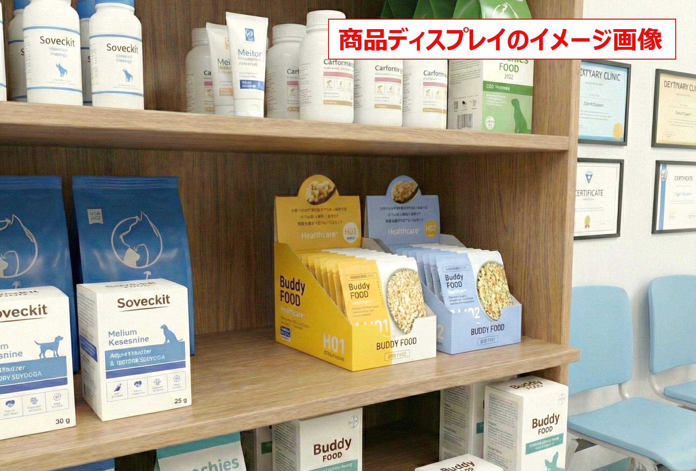 本製品は、Buddy FOODが培ってきたフレッシュフードの特長である嗜好性に加え、食品基準での工程管理、国産・無添加設計(※)を受け継ぎつつ、獣医師の診断・指導のもとでの使用を前提に、動物病院での提供・継続を想定して設計した常温保存タイプの療法食です。