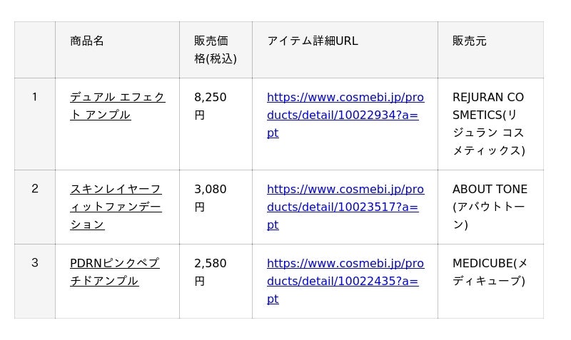 ・公式サイト :https://www.cosmebi.jp/?a=pt