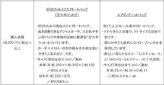 ・16,000円<税込>以上購入で「スプリングニットバッグ」<ミントチョコレート>または<ストロベリーミルクティー>)をプレゼント