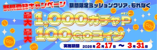 AGOにユーザー登録の上、AGO内の期間限定ミッションをクリアすることでもれなく、それぞれ最大、1000ガチャポイント、100GOコインをプレゼント!