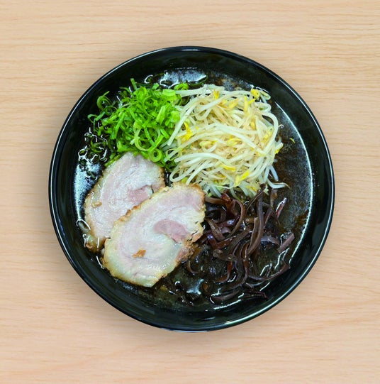 豚骨をベースに、香ばしいマー油を重ねた好来の看板メニュー。見た目は黒くインパクトがありながら、スープはすっきりとした飲み口で、最後まで飽きずに味わえる。長時間炊き込まず毎日仕込むことで、豚骨特有のクセを抑え、素材本来の旨みを生かした仕上がり。麺は、すすり心地の良さにこだわった中太の自家製麺。季節や気温に合わせて状態を見極めて仕上げ、スープとの一体感を大切にしている。たっぷりとした麺量ながら、重さを感じさせないバランスが特徴。トッピングには、黒いスープに映えるもやしや、スープで炊き上げたチャーシューを合わせ、食感と味わいにアクセントを添えている。香ばしさとやさしさが共存する、好来ラーメンならではの“黒い一杯”。