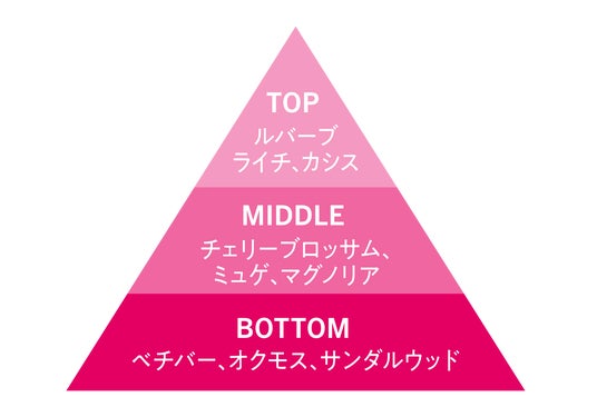 重なり合うフレッシュ・フローラル・フルーティ調の香り。