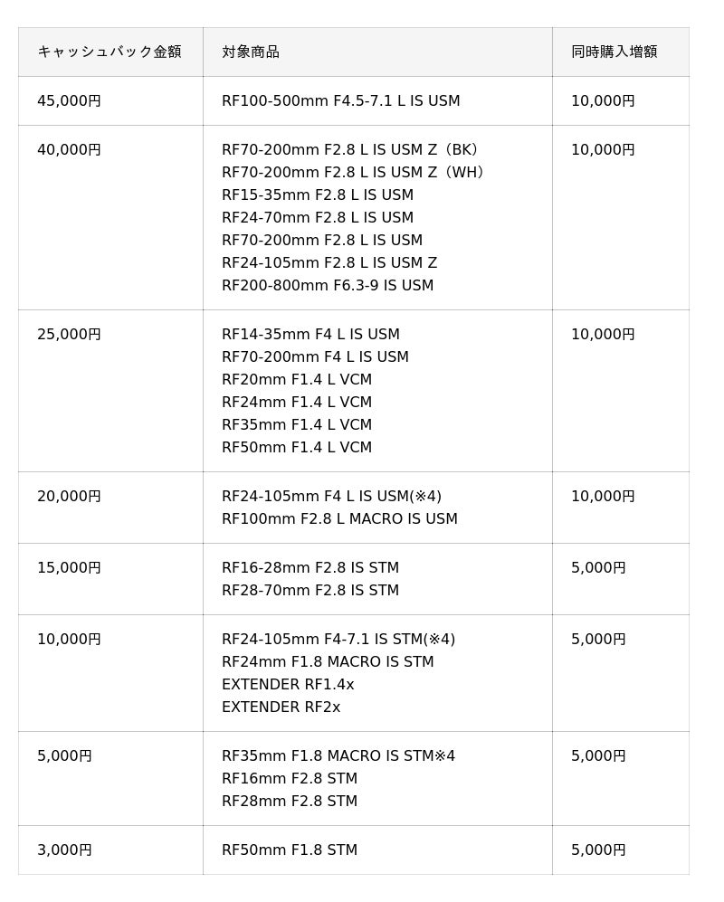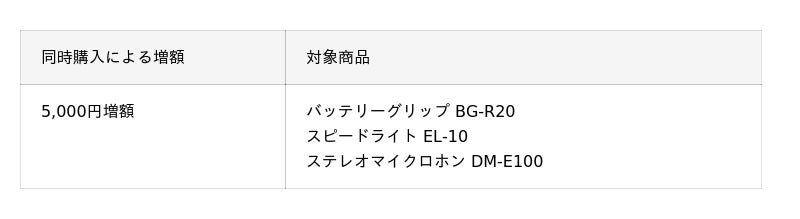 ※8 アクセサリーはカメラまたはレンズと同時購入の場合にキャッシュバック金額が増額となります。単品でのキャッシュバックはありません。