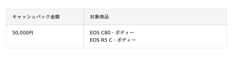 キヤノンマーケティングジャパン株式会社(代表取締役社長:足立正親 以下キヤノンMJ)は、ミラーレスカメラ・RFレンズ・デジタルシネマカメラ・レンズ一体型カメラ・レーザー距離計・コンパクトフォトプリンターを対象に、最大5万円をキャッシュバック(※1)する「キヤノン 春のキャッシュバック2026」を2026年2月20日(金)より実施します。