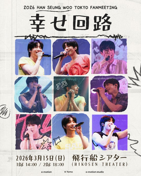 圧倒的な歌唱力とステージングで世界を魅了する韓国アーティスト、ハン・スンウ(HAN SEUNG WOO)が、2026年3月15日(日)に東京・飛行船シアターにて単独ファンミーティング『2026 HAN SEUNG WOO TOKYO FANMEETING "幸せ回路"』を開催する。