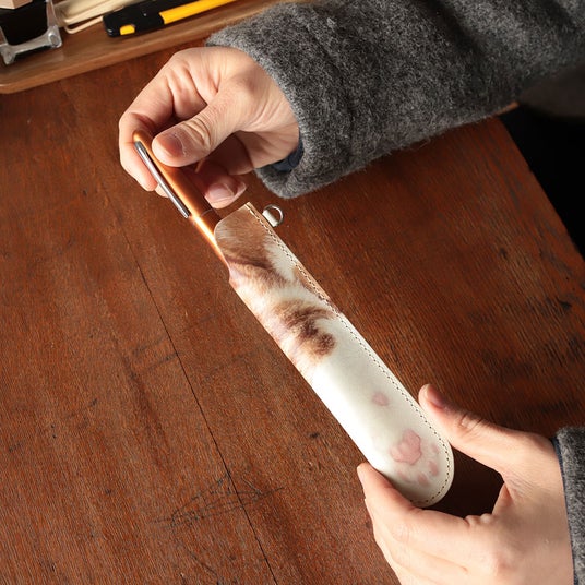 愛猫の毛色や肉球の色合いを活かして、うちの子の「おてて」をペンシースに仕立てます。