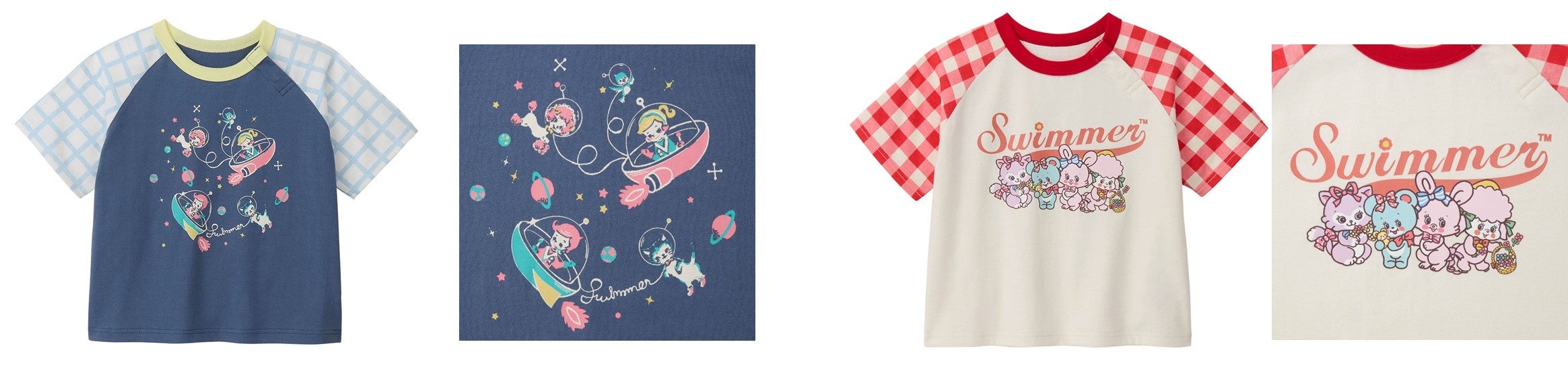 これまで展開してきたベビー・キッズ向けアイテムに加え、今回シリーズ初となる、ユニセックスで着用できるキッズ半袖Tシャツ(全4デザイン/税込価格1,590円)と、「SWIMMER世代」である30代を中心とした20代から40代の幅広い世代の女性に向けたレディースアパレル(全2デザイン/税込価格3,490円)を新たに展開します。