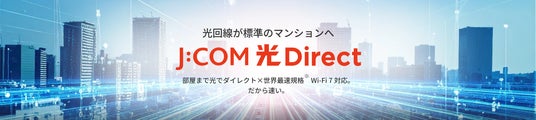 JCOM株式会社(J:COM、本社:東京都千代田区、代表取締役社長:岩木 陽一)は、集合住宅を対象とした高速光回線インターネットサービスブランドとして「J:COM 光 Direct」を2026年2月17日(火)から立ち上げます。最大10Gまで増速できる安定した光回線※2を宅内まで直接提供できるほか、世界最速規格※1Wi-Fi 7に対応することで、進化した通信技術による、高速で安定した質の高い通信環境をお届けします。