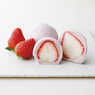 苺の風味を楽しめるふんわりやわらかな餅に揖斐川産の苺と上品な甘さの白餡を包んだ職人こだわりの大福。