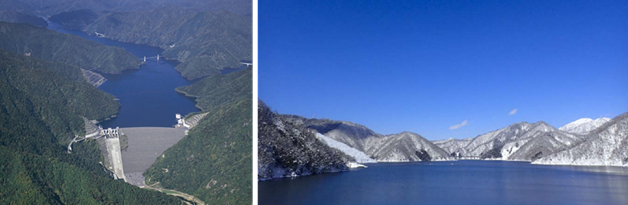 (左から)徳山ダム、徳山ダム湖