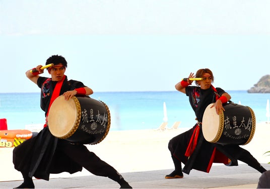 3.ライブステージ(歌、エイサー)特別ライブステージでは、沖縄POPSの夫婦ユニット「みうとぅん」による歌のステージと、沖縄芸能のプロパフォーマー「琉星太鼓」によるエイサーをお届けいたします。伸びやかな歌声と迫力ある演舞で、会場を盛り上げます。