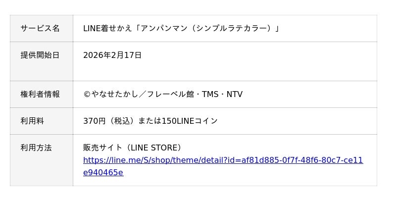 株式会社日テレWands(本社:東京都港区、代表取締役社長執行役員:角田洋子、以下、日テレWands)は、LINEヤフー株式会社が運営するコミュニケーションアプリ「LINE」内のスタンプショップとLINEの公式オンラインストアLINE STOREにて、LINE着せかえ「アンパンマン(シンプルラテカラー)」の配信を開始いたしました。