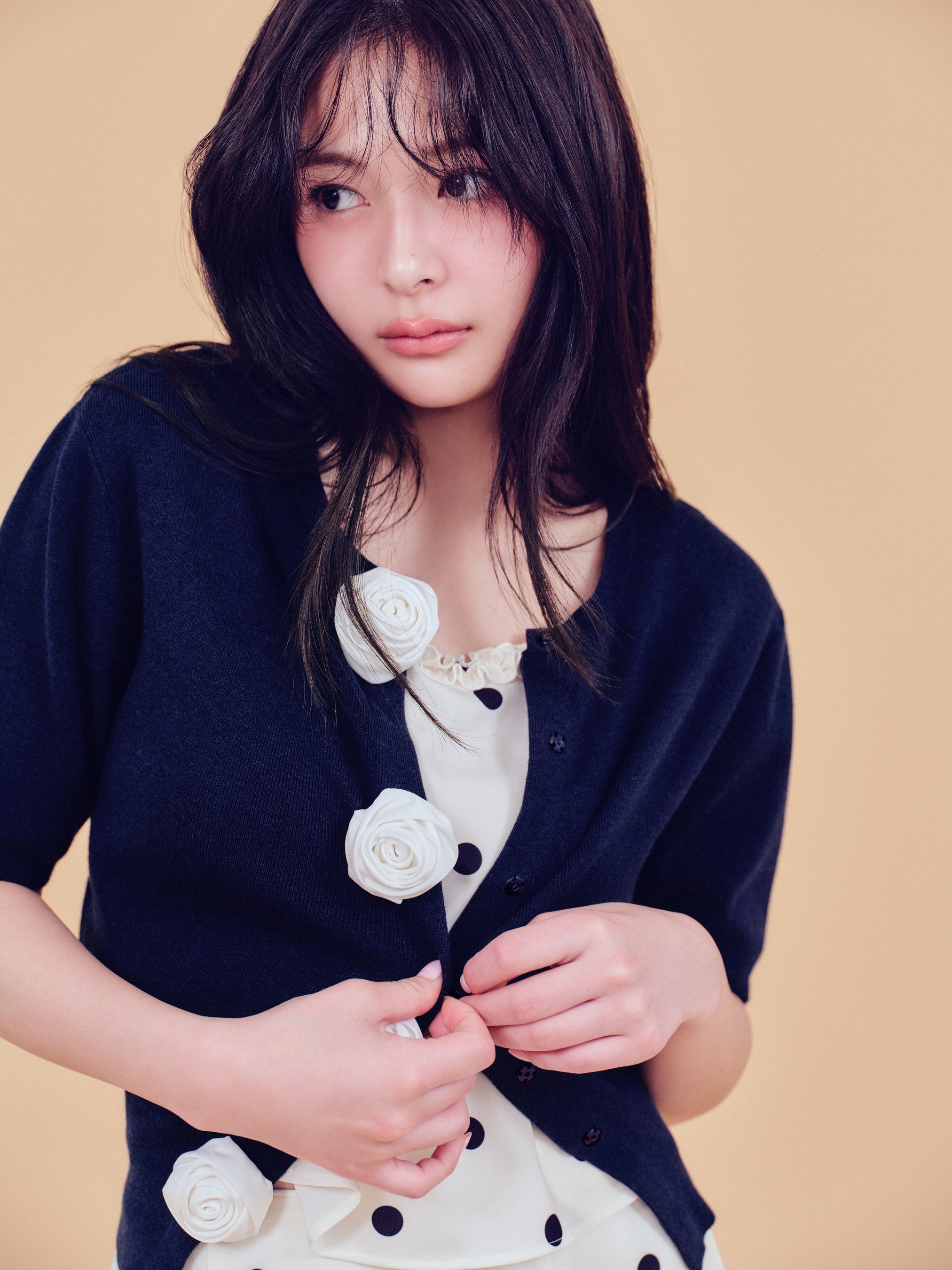 存在感のあるローズボタンや華やかなデザインが魅力的な春を先取るカーディガン&ワンピースの全2型を紹介