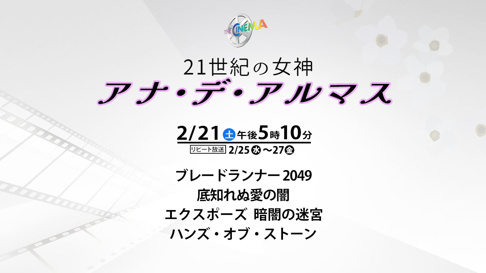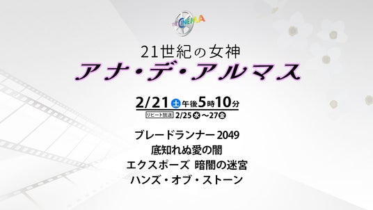 日本唯一(*)の洋画専門チャンネル ザ・シネマ(AXN株式会社、本社:東京都渋谷区、代表取締役社長 野島亮司)では、超人気シリーズ「ジョン・ウィック」のスピンオフとして2025年に公開され話題となった『バレリーナ The World of John Wick』の主演で、一躍注目女優にジャンプアップしたアナ・デ・アルマスを特集!国内TV初放送となる『底知れぬ愛の闇』や、彼女の名を知らしめた『ブレードランナー 2049』など、全4作品を2月21日(土) に放送いたします。