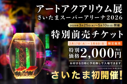 アートアクアリウム展 さいたまスーパーアリーナ2026実行委員会は、さいたまスーパーアリーナ 展示ホールにおいて、「アートアクアリウム展 さいたまスーパーアリーナ2026」を3月25日(水)~5月10日(日)の期間限定で開催します。