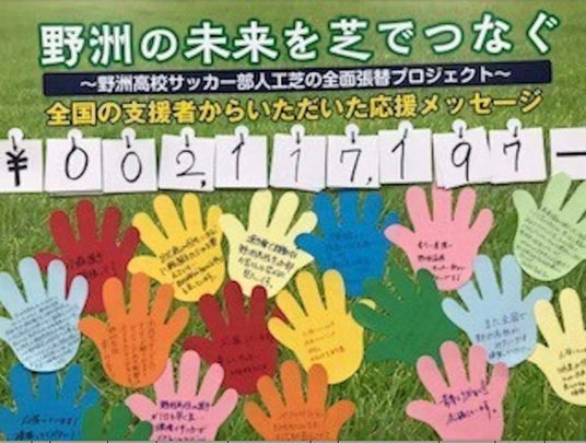 このような状況を改善するために、人工芝の全面張替に必要な資金約1億円について、昨年12月よりクラウドファンディングを主体とした寄付により集め、現在その実現を図っております。