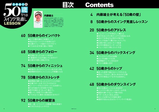 上手くなりたい人が読むゴルフ誌「GOLF TODAY」を後ろからめくると始まる人気連載、「内藤雄士の50歳からのスイング見直しLESSSON」。多くのシニアゴルファーの支持を集めてきたこの企画が、待望の一冊にまとまりました。