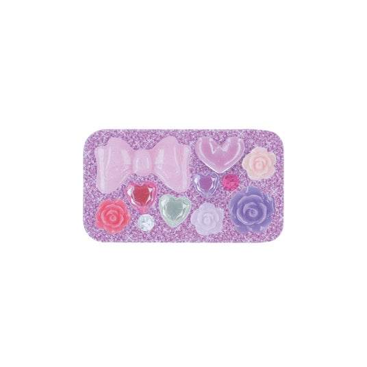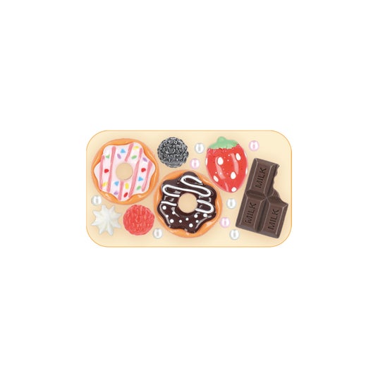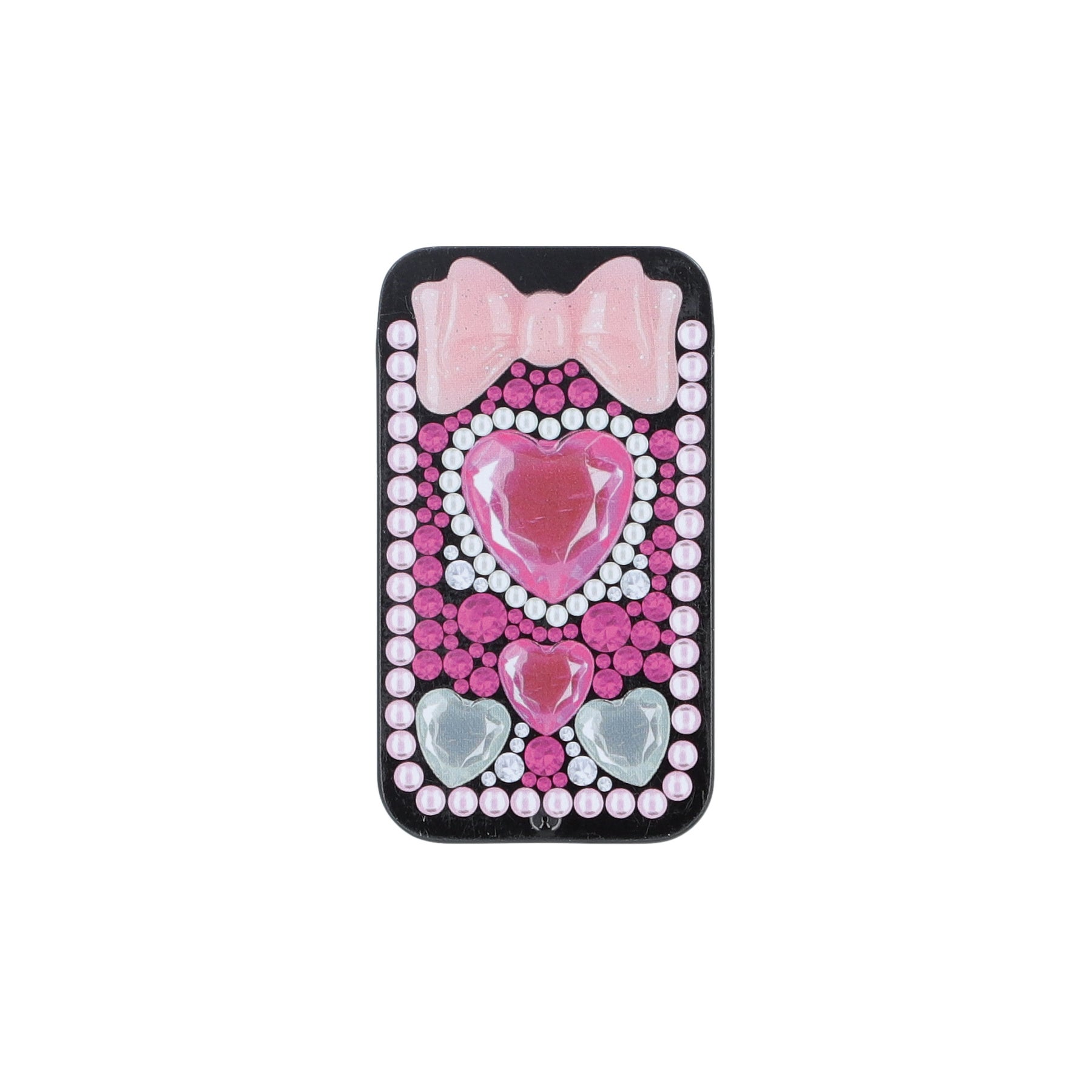 平成を思い起こさせるデコレーションデザインをプリントした缶ケースです。デザインには撮影したデコパーツを使用し、ラインストーンやパーツはあえて整頓せず配置することで、リアルな質感や手作り感を表現しました。キラキラとしたグリッターやデコパーツに心ときめくデザインは、ぷっくりとしたドーナツやチョコレートをあしらった「スイーツイエロー」やラインストーンを敷き詰めた「ハートブラック」など、全5種がラインアップ。ヘアピンやヘアゴム、常備薬やクリップなどを入れるのにぴったりのサイズ感で、持ち運びに便利なボールチェーン付きです。