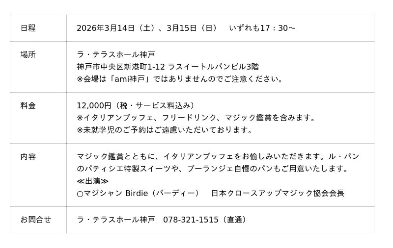 ◆お客様のお問合せ先:ラ・テラスホール神戸 078-321-1515(直通)