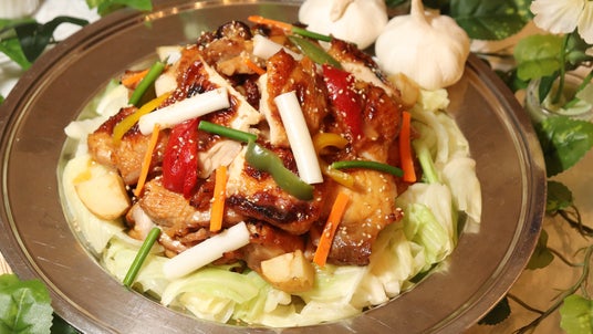 春の新鮮な野菜とやわらかな鶏肉を甘辛い韓国風タレでじっくり焼き上げました。ご飯がすすむ一品です。