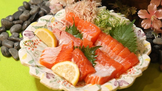 富士山の湧水で育まれた新鮮なサーモンをお刺身で。きめ細やかでしっとりとした脂の乗った身質は絶品の味です。