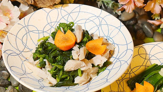 春先が最も食べ頃の菜の花とツナをだし醤油で和えました。お酒との相性も良い和風前菜です。