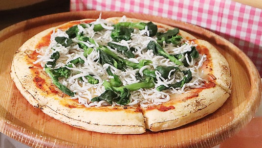 菜の花の風味としらすの優しい塩味が相性抜群。チーズのほどよい香りが食欲をそそる春だけの彩りピザです。