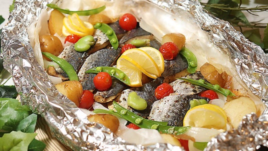 うまみたっぷりのアサリとやわらかな鰆を新たまねぎと共にホイルでふっくら蒸し焼きしました。レモンバター醤油がアクセントです。