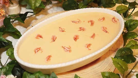 香ばしいえびの風味がふんわり広がる、なめらかな洋風茶碗蒸しです。