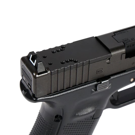 エアソフトガン用ハンドガンのカスタム需要が高まる中、ドットサイト搭載はサバゲー装備の定番へ。グロック系ガスガンの拡張性を高める高剛性アルミ製プレート型マウント。