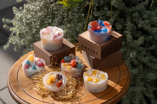 過去のイベントで灯されたキャンドルを再利用した、アップサイクルワークショップ。 カラフルなキャンドル作りをお楽しみください。