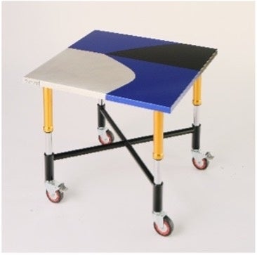 ヤマハ発動機が長年培ってきた塗装技術「サンバースト塗装」は、職人が手作業で一つひとつ仕上げる伝統的な技法です。現在、この高度な技術を担える職人は同社内でも限られており、ヤマハ発動機では若手への継承に取り組みながら、大切に受け継がれてきました。船場はこの塗装技術に着目し、職人の手仕事を未来へ残すテーブルシリーズを制作しました。