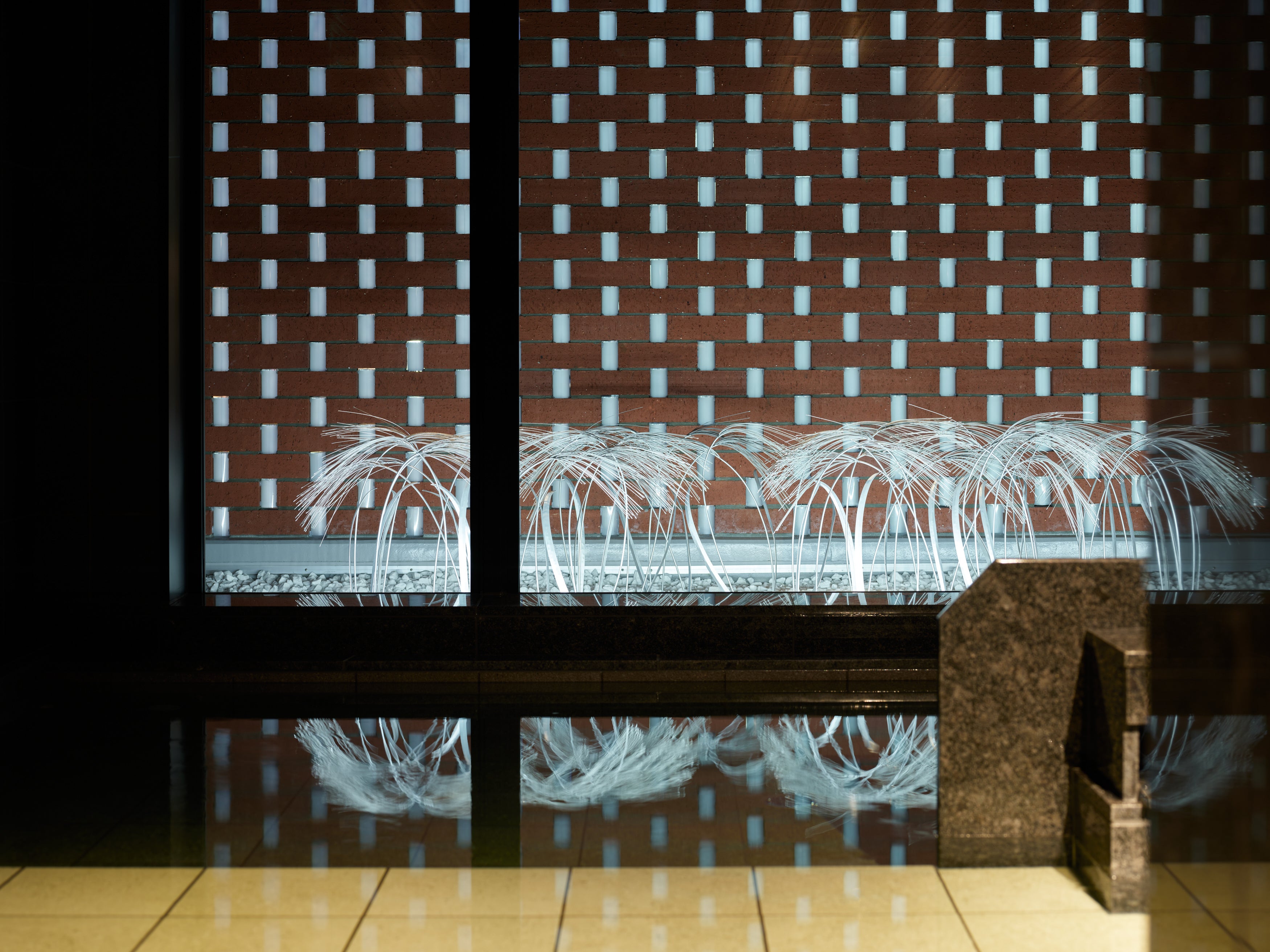 大浴場から望む、アートを配した坪庭