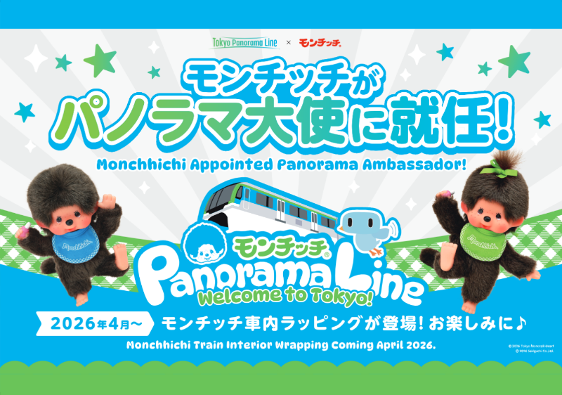 この度、1974年の発売から現在まで、日本や世界中で多くの人々に愛され続けている「モンチッチ」が「パノラマ大使」として東京パノラマラインの車両に登場!日本の玄関口である羽田空港から東京都心へ向かう皆さまを、モンチッチが特別車両でお出迎えします。