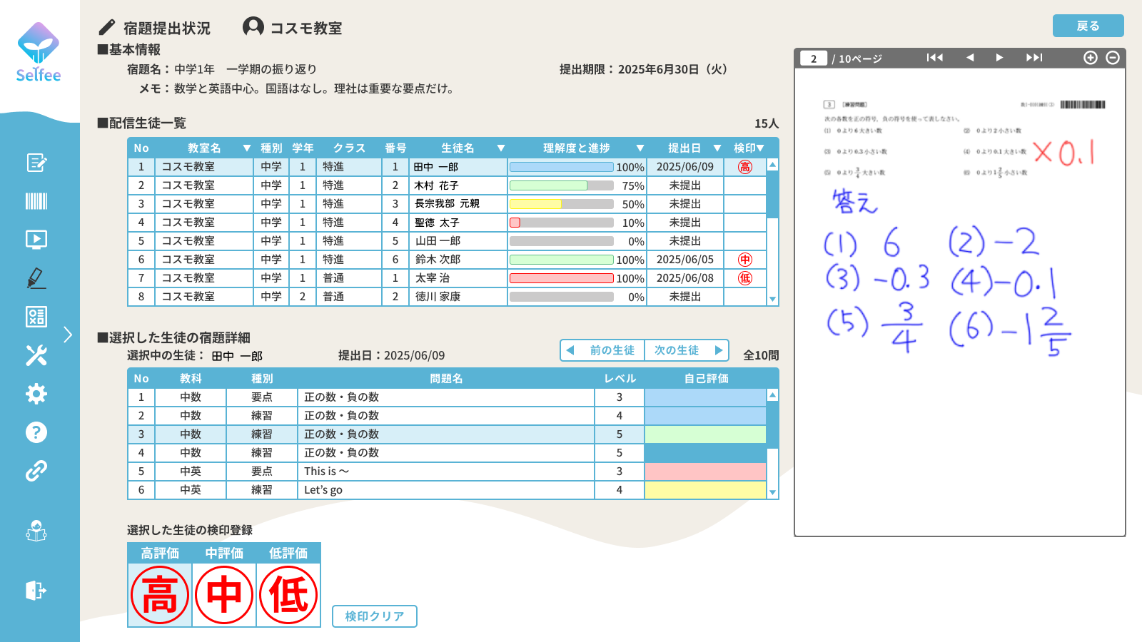 - 生徒一人ひとりの進捗状況がわかりやすく、指導の優先順位が明確になります。