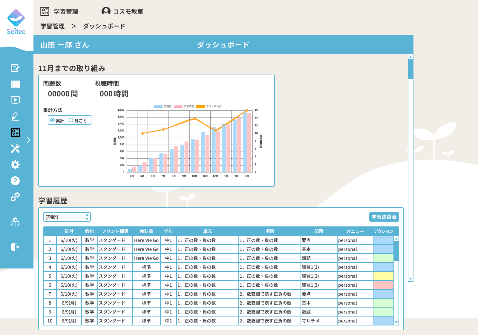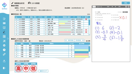 Selfeeと学習管理が「ボタンひとつ」で連携し、先生は生徒一人ひとりの進捗状況や学習履歴を簡単に確認できます。