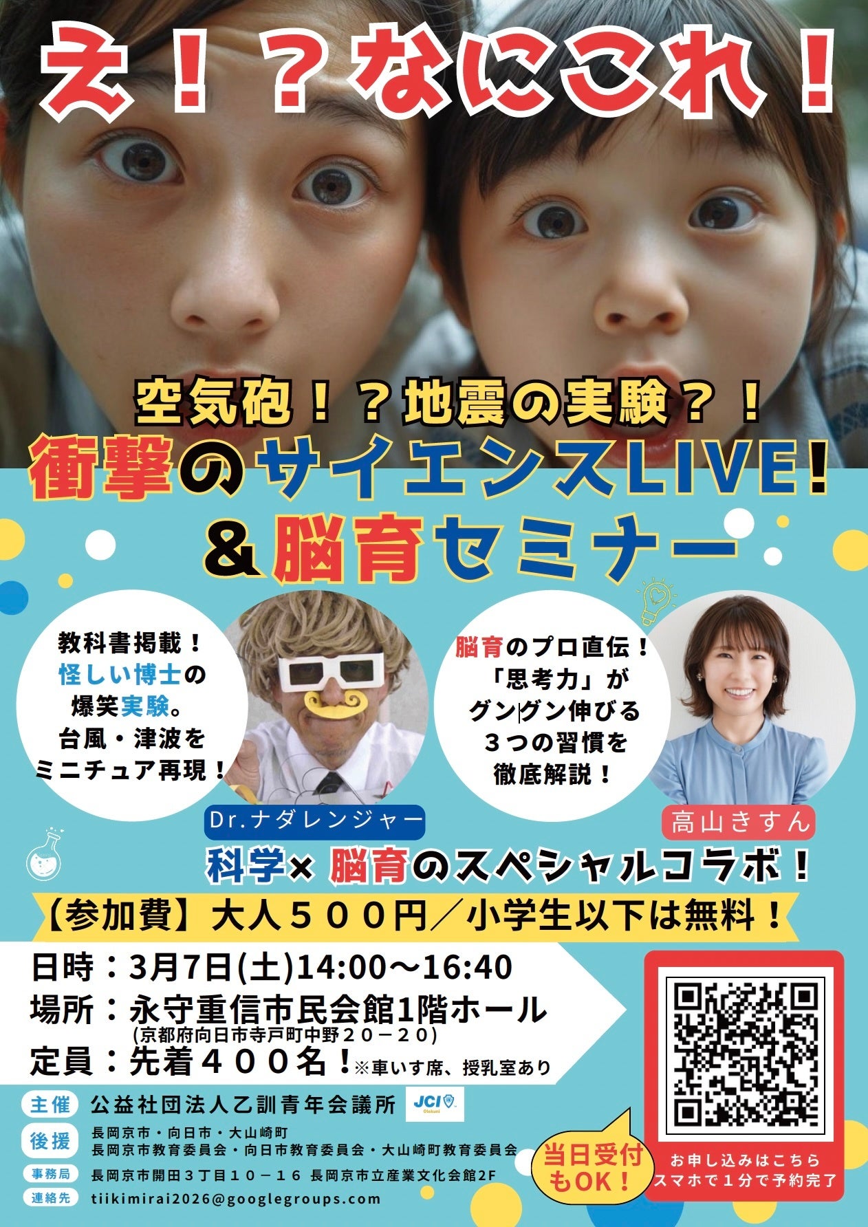 公益社団法人⼄訓⻘年会議所は、2026 年 3 月 7 日(土)、永守重信市民会館にて、子どもたちの論理的思考能力を育むことを目的としたイベント「3 月オープン例会」を開催いたします。