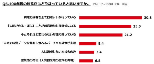 未来の飲食店予想は「完全自動化」が3割の一方、「人間による調理が超高級付加価値化」が2割