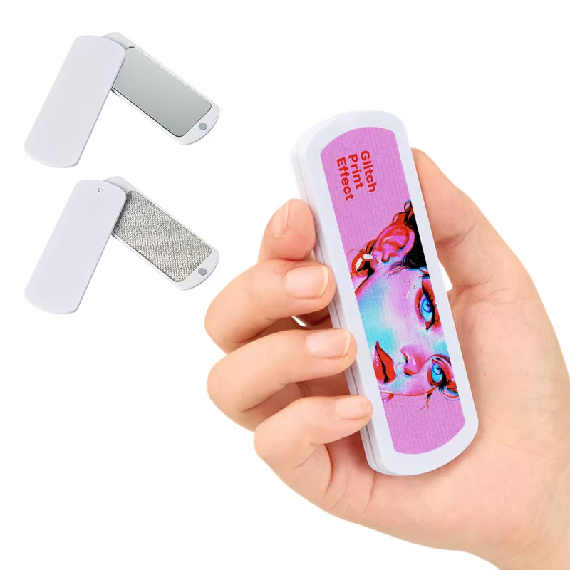 オリジナル折りたたみ洋服クリーナー(ミラー付)は1個から注文可能。試作や小規模イベント、限定ノベルティにも柔軟に対応できます。
