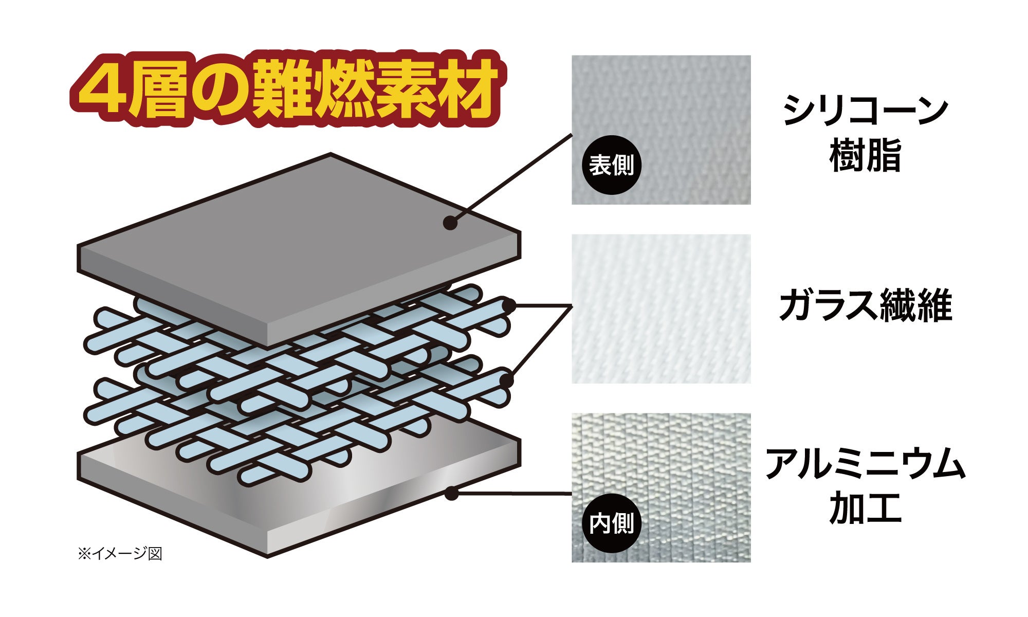 ・4層構造の難燃素材!火を近づけても燃えにくく、安心!