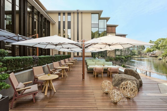 この庭園を囲むように並ぶホテル館内は、ハーシュ・ベドナー・アソシエイツがデザインを担当する123の客室とスイート、57のホテルレジデンスを有し、ゆとりあるスペースを確保。スタイリッシュでありながらも和のエッセンスを秘めた空間が安らぎのひとときを与えてくれます。また、2025年春に新しく生まれ変わったステーキハウス「エンバ・キョウト・グリル」では自家熟成のステーキや旬のシーフード、地元野菜の炭火焼をはじめ、ホテル特製のアフタヌーンティーをお楽しみいただけます。数量限定のオリジナルスイーツ、夜はカクテルやモクテルが味わえる「ザ・ラウンジ&バー」のほか、庭園の対岸にある数寄屋造りの茶室ラウンジ「楓樹」では、日中は抹茶などを使用したスイーツ、夕暮れ時からはライトアップされた庭園を目前に日本酒やシャンパンをお楽しみいただけます。