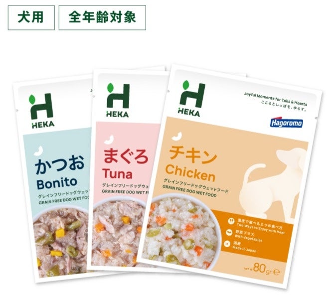 はごろもフーズ株式会社(本社:静岡県静岡市 社長:後藤佐恵子)は、HEKA Petlife株式会社(本社:神奈川県横浜市、代表取締役:藤田英輝、以下「HEKA」)が発売する”パッケージのまま温められる”電子レンジ対応パウチを採用したドッグウェットフード「HEKAグレインフリードッグウェットフード」3種を、獣医師と共同開発しました。2026年3月5日(木)からHEKA公式オンラインショップで発売します。