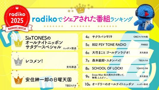 ※集計方法:2025年1月1日~12月31日の期間に、radikoで聴かれた各番組全放送回の聴取者数(ライブ・タイムフリー・タイムフリー30・エリアフリー合算)をランキング化しています