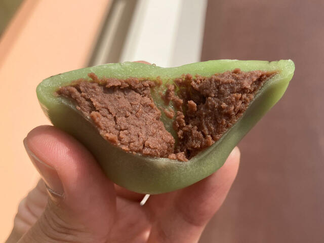 手を伸ばした2個目のリトルグリーンまんの中身は、いちごクリーム。甘さの中に絶妙な酸味が感じられて、こちらも美味。しかしやられたなー、こんなサプライズがあったとは。