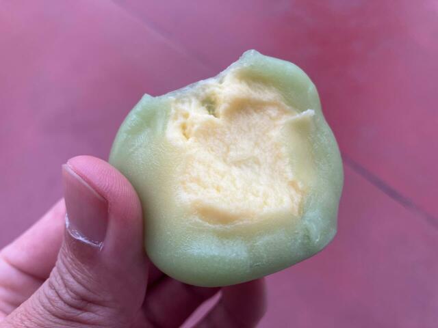 続いては、「リトルグリーンまん」。「トイ・ストーリー」に登場する緑色のエイリアン=リトル・グリーン・メンをフィーチャーしたスイーツは、その個性的なビジュアルで人気の商品。私は今回が初体験!