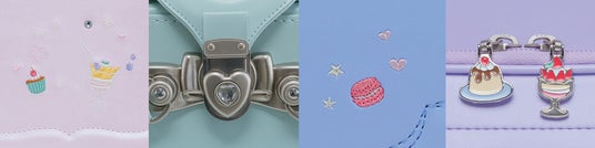 前ポケットの引手には、プリンとパフェを象ったスイーツチャームをあしらいました。手に取るたびに心が華やぐ、さりげない遊び心を添えております。
