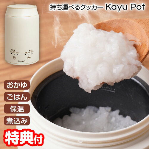 簡単操作で自分好みのおかゆが作れて携帯もできる、THANKO(サンコー)の「持ち運びもできるおかゆクッカー『KayuPot』」がポイント10倍とお買い得です。