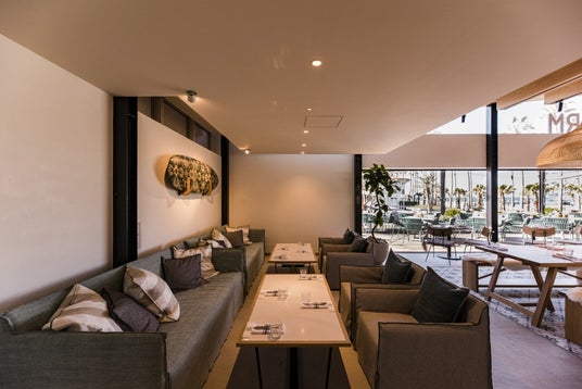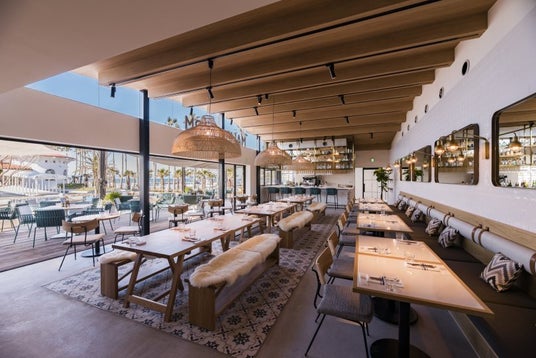アメリカ カリフォルニアに本店を構える、海外セレブに大人気のレストラン「Malibu Farm」の日本唯一の店舗。マリーナの海から繋がるような大きな水盤が広がる開放的なテラスが特徴的で、目の前にヤシ並木が見渡せます。リビングダイニングとして出演者同士の会話や感情が交差するシーンに使用され、視聴者の印象に残る場面として描かれています。