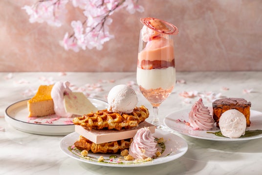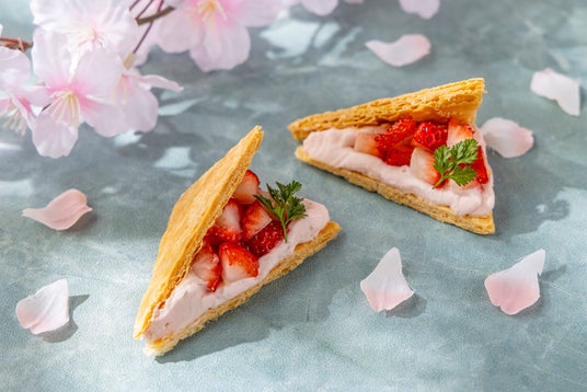 桜のチーズムースと桜アイスを重ねた「桜クロッフル」。クロワッサン生地に桜あんを忍ばせた「桜クロッカン」は、ほどよい甘さと軽やかな 食感が絶妙!NYCと東京を感じる「桜パフェ」や「桜チーズケーキ」も登場。思わず一口と、心がときめくスイーツが勢ぞろい。いちごと桜が軽やかに彩る、この季節だけのスイーツを。